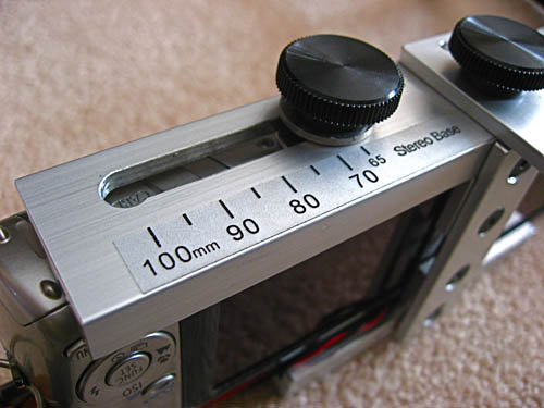 Direct reading scale, so you can set the stereo base from 65mm to 99mm.